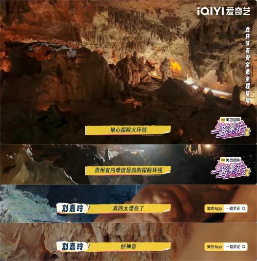 本期节目中,繁花团深入贵州腹地,挑战贵州省内公认难度最高的“地心大环线”探险路线。这条以喀斯特地貌为核心的探险线路,融合了溶洞、地下河、峡谷等亿年地质奇观,洞内钟乳石林立、卷曲石奇异,部分区域因“虹吸现象”维持恒温恒湿,宛如地球的呼吸腔室。