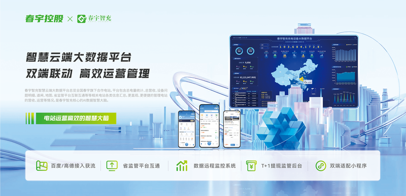 自主研发"春宇智充"云平台,集成引领、结算、监管、检测、报表等AI算法,与高德地图、百度地图实现互联互通,现已在全国范围内建成超过2000个充电桩,服务网络覆盖70多个城市,惠及30万+用户群体。并通过与小桔充电等头部运营商战略合作,构建起"设备+平台+服务"三位一体的新型基础设施。