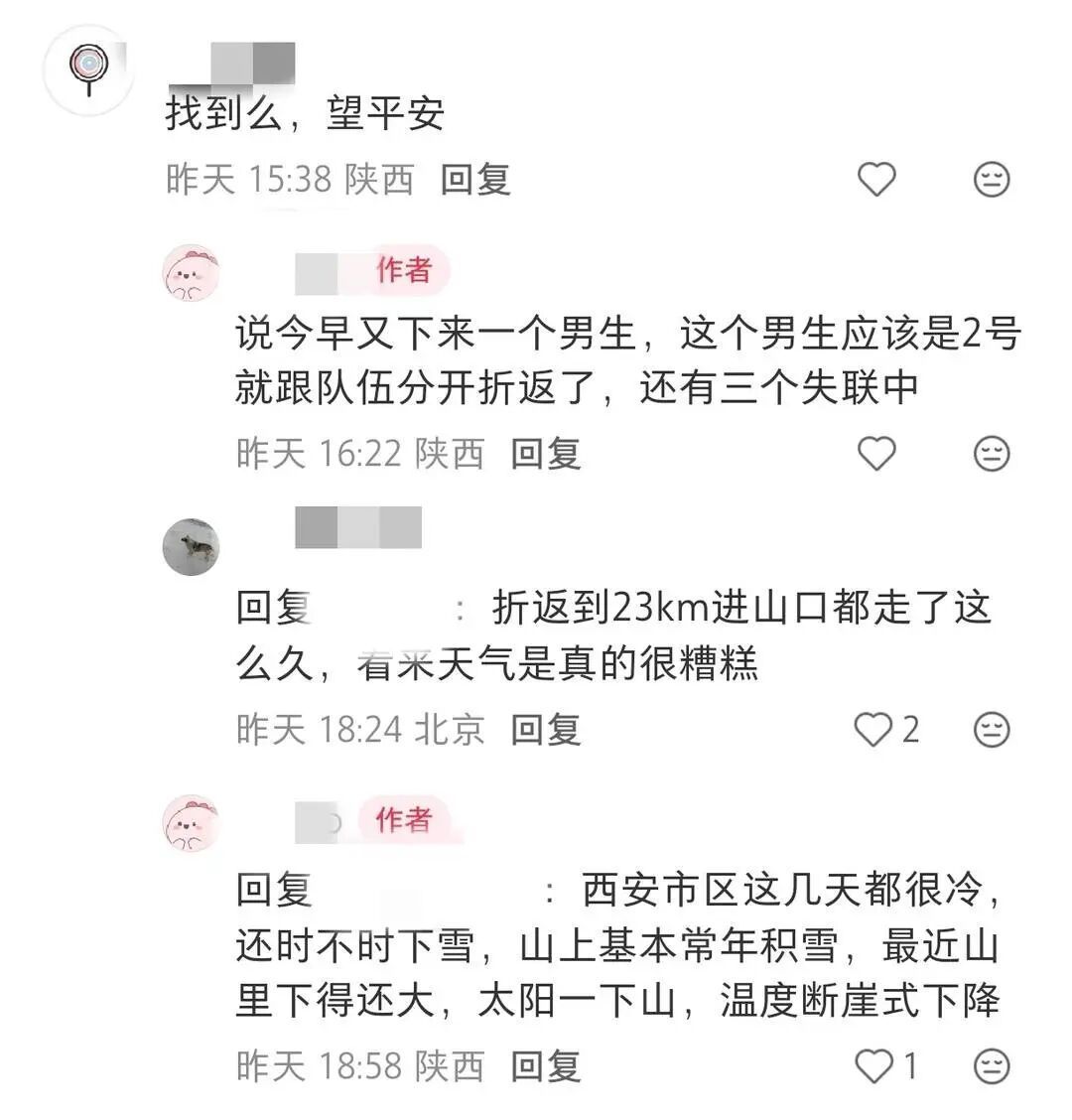 近日,“5人元旦穿越小鳌太线,4人失联”引发广泛关注。据当地救援队和驴友透露,目前失联的4人中已找到1人,其余3人仍在搜救中。